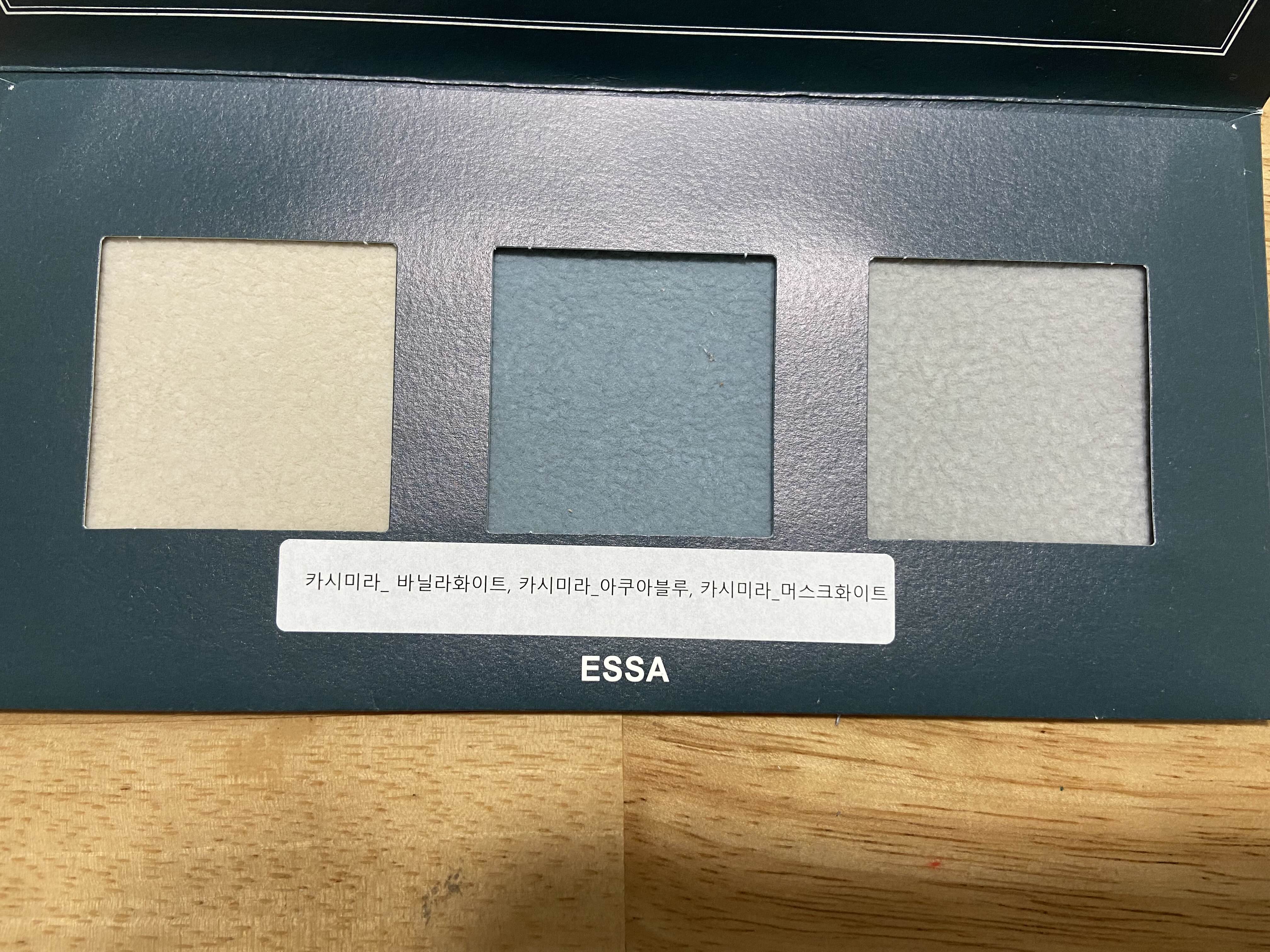 에싸 공홈에서 구매하기전 샘플 키트를 신청해 색깔을 비교해보았습니다. (신청하고 받는데 2주 정도 걸렸어요.)